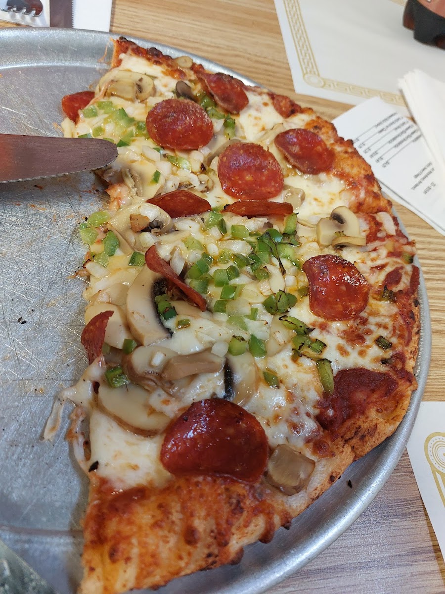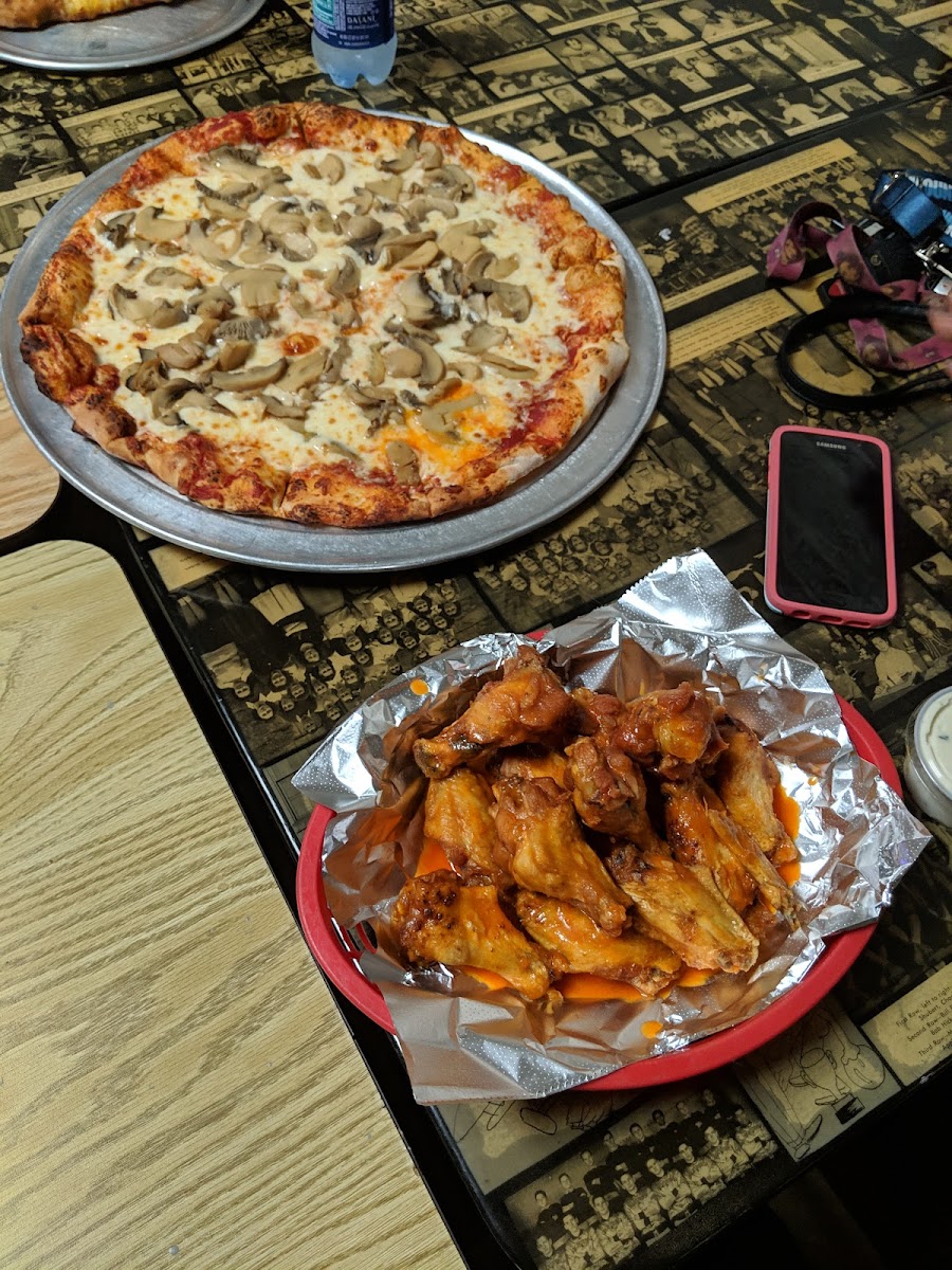 We had a small mushroom pizza and a dozen wings, and they were so good. You couldn't beat that cheese pull on that fresh pizza. I should've taken a Pic but was too amazed by the smells. The dough was even full of it's on flavor that fit well with the sauce and toppings Tha wings were saucy and flavorful and juicy. Not to spicy but just full of flavor. Great staff and a nice diner atmosphere.